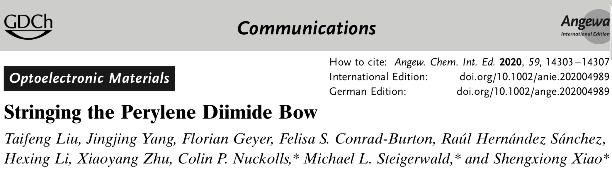 为第一署名单位在国际期刊《德国应用化学》(Angewandte Chemie International Edition)上在线发表,论文题为《Stringing the PDI Bow》。论文第一作者为九秀直播