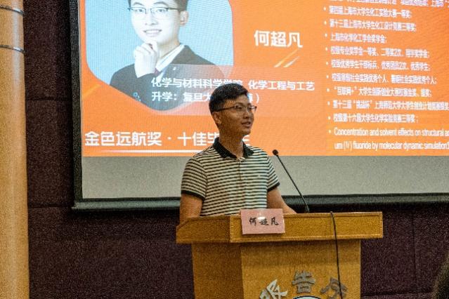 直博复旦的何超凡学长向新生们分享了很多宝贵经验。他指出,理想和信念是对自己的大学四年做出规划的第一要素;其次,拥有执行力和顽强的毅力是通往成功的必经之路,同时在学习、工作等方面,都要做到谦虚稳重,方可知行合一。