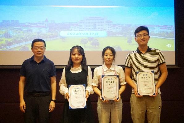 为了进一步提高人才培养质量,激励九秀直播 全体学生坚定理想信念、矢志拼搏奋斗,学院设置“化院之材”奖学金,以表彰奖励在学术科研、团学活动、社会实践、服务奉献等各领域表现突出的本研学生。2022-2023年度获奖学生代表2023届研究生任宇晴、2023届本科生何超凡、2020级本科生王茹上台领奖,由学院党委书记盛况老师为他们颁奖。