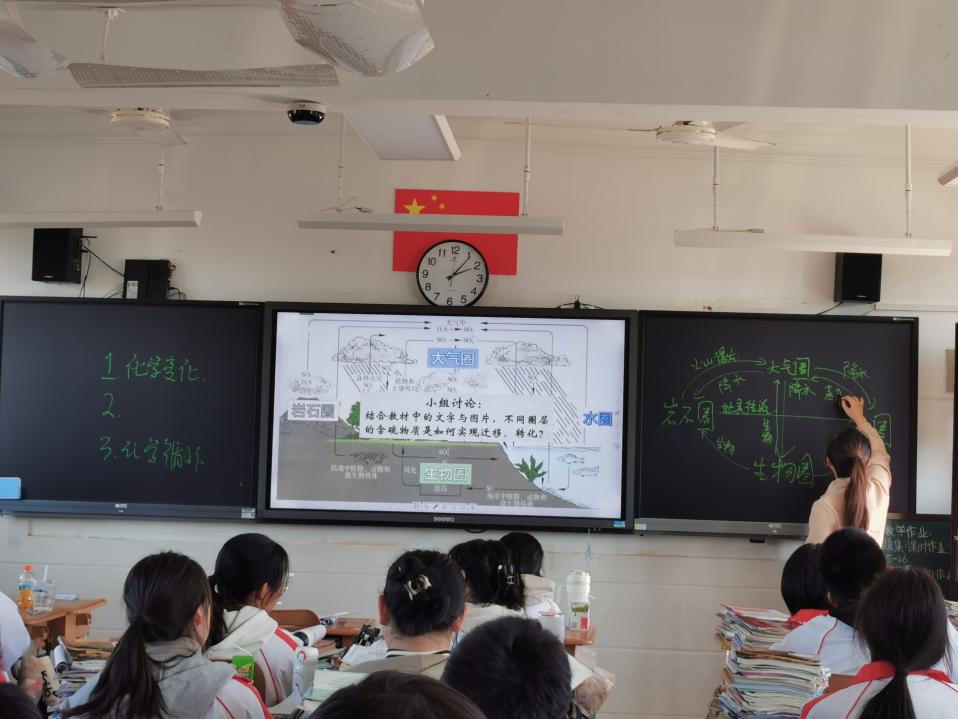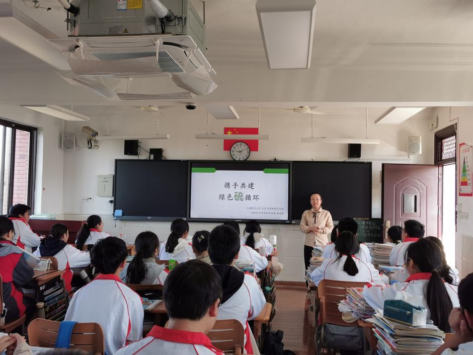 郑雨晴带来了《携手共建,绿色“硫”循环》一课,与同学们共同绘制硫元素的价类二维图,构建起自然界中的绿色硫循环。“我们要用化学变化的视角看待自然变化,要用化学推理的逻辑判断事物发展,要用化学循环的担当维护社会和谐。”在课堂讲授中,师生互动活跃,本课程对于培养学生绿色循环的环保理念和社会责任有所帮助。