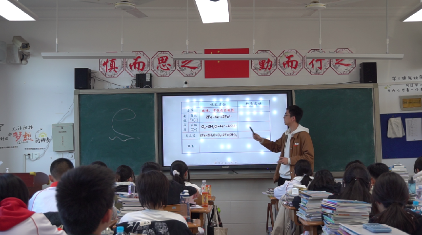 李泽宇带来了《探究电化学腐蚀与保护——以福建舰为例》一课,讲述了电化学在航母领域中的应用,探讨了航母是否容易受到电化学腐蚀的影响。通过与学生互动,引导学生思考电化学保护的多种方式,从防止腐蚀的角度展示了科学在航母维护中的重要性。在课堂中,李泽宇分享了我国三艘航母的漫长研制历程,以及那些为航母事业默默奉献的科学家们,激发学生对科学事业的热情和责任感,让学生能够理解科学背后的坚持与担当,将这份理念传承并贡献给未来的科学发展。