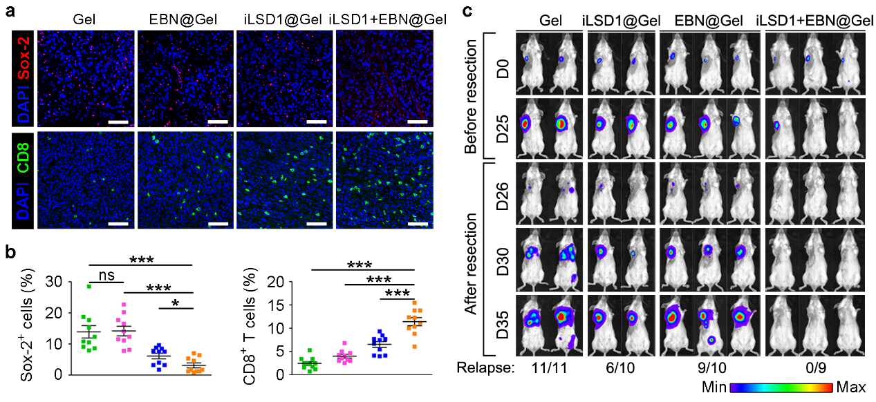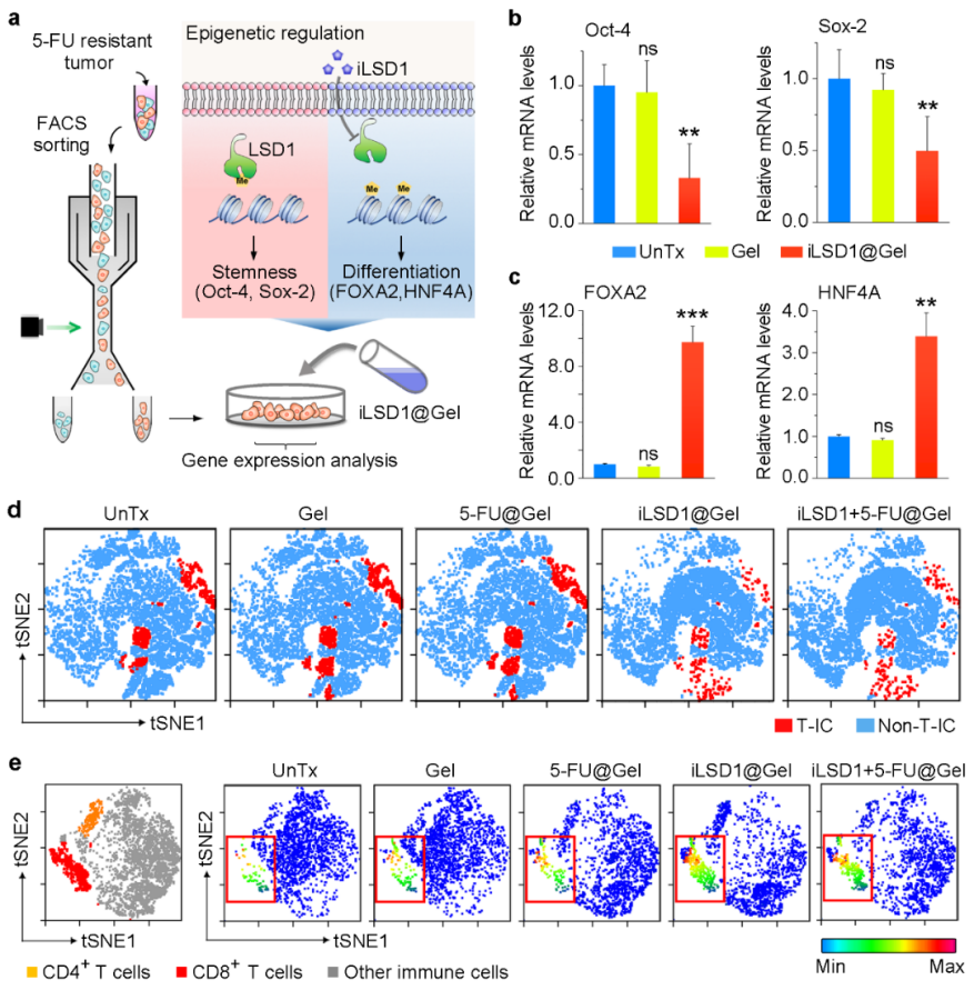 该研究利用原位形成的肿瘤微环境响应型表观遗传重塑水凝胶贴发展了针对耐药性三阴性乳腺癌的联合疗法,通过诱导肿瘤干细胞分化和免疫激活,克服该肿瘤模型对多种化疗药物的耐药性,抑制肿瘤生长、术后复发和转移。