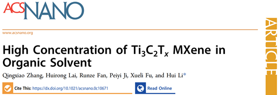 近日,李辉教授课题组的研究成果在ACS Nano上在线发表,论文题为High Concentration of Ti3C2Tx MXene in Organic Solvent,论文第一作者为张庆萧,通讯作者为李辉教授,通讯单位为九秀直播 。