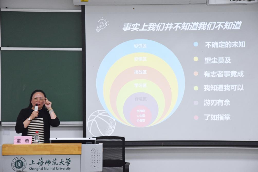 而在选择之后,便是努力。“更多的时候我们认识专业、认识行业,都没有认识自我重要。”董燕老师引用了认识长板理论,期望同学们能以认识自我为基础,找到自己的一技之长,成为最完美的桶上必不可少的一块长版;在定期自我评估中有针对性地决定自己的上层建筑,顺应自己的价值观来思考合适的职业倾向。最后,每位同学都应当秉持着“有志者,事竟成”的奋斗精神不断突破自己的舒适区,瞭望到更广阔的蓝天。