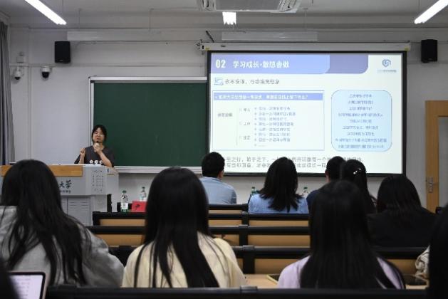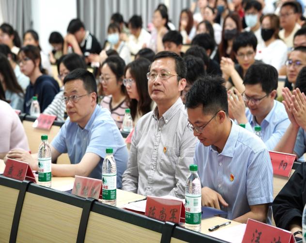 “海压竹枝低复举,风吹山脚晦还明”,校学生党员标兵施泽怡同学从崇德向党、立志成才、砥志研思、善做善成四个方面分享了她的成长故事,并鼓励学弟学妹们做好大学规划,将个人发展融入社会和国家的发展大局中。