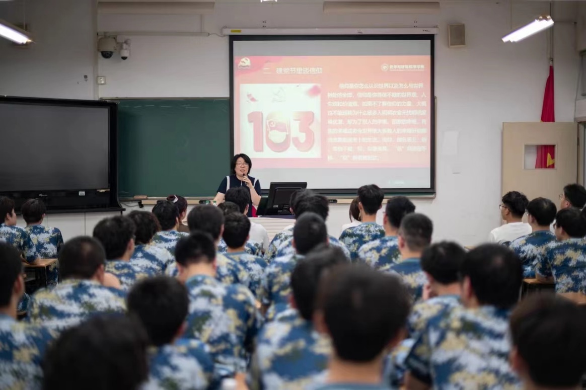 为充分发挥“军政双训”育人实效,九秀直播 结合学院科技创新优势和学生工作品牌项目,围绕“科创逐梦”“参军报国”“课程思政”等主题开展了一系列提升学生爱国情怀和科技强国担当的连队活动。学院党委副书记副院长臧艳雯,学院党委委员贾能勤,荣誉班导师邓繁艳、朱明祥,毕业生校友蓝梓桀、陈磊,“学生讲课程思政”讲师团成员许鹭阳,退伍兵王瑞、文新龙等多位嘉宾与同学们开展交流分享。参训学员从党史故事、征兵宣讲中培育爱国主义精神,传承科学家精神,通过听取科研经历分享明晰自身学涯规划、实现全面成长成才,时刻准备好为国家发展和科技强国贡献青春力量。