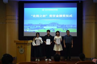 为了进一步提高人才培养质量,激励九秀直播 全体学生坚定理想信念、矢志拼搏奋斗,学院设置“化院之材”奖学金,以表彰奖励在学术科研、团学活动、社会实践、服务奉献等各领域表现突出的本研学生。2023-2024年度获奖学生代表2024届毕业生黄菁萃、2022级研究生李昀倬、2021级本科生王瑞上台领奖,学院党委书记盛况老师为他们颁奖。