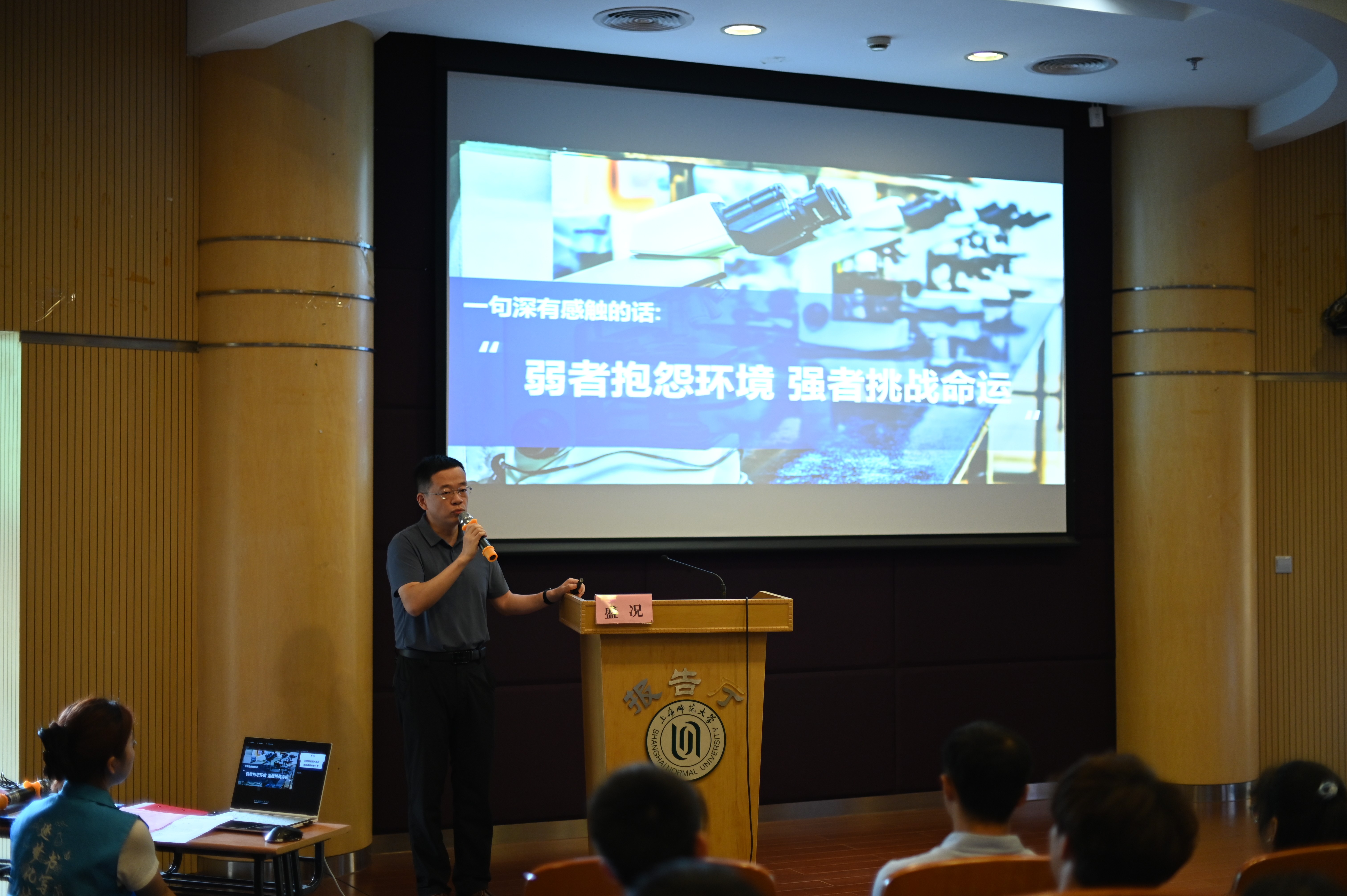 学院副院长郎万中老师为大家介绍本科教学情况及各专业情况。他通过介绍学院坚实的学科平台与优质的科研平台,详细阐述了培养方案与课程体系,希望同学们在新阶段中,不仅要努力学习,还要全面提升自我,为未来的职业生涯打下坚实的基础,在激烈的就业竞争中脱颖而出,实现自己的人生价值。