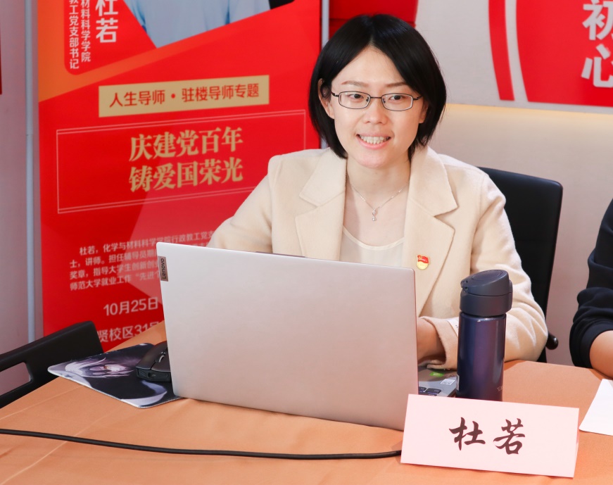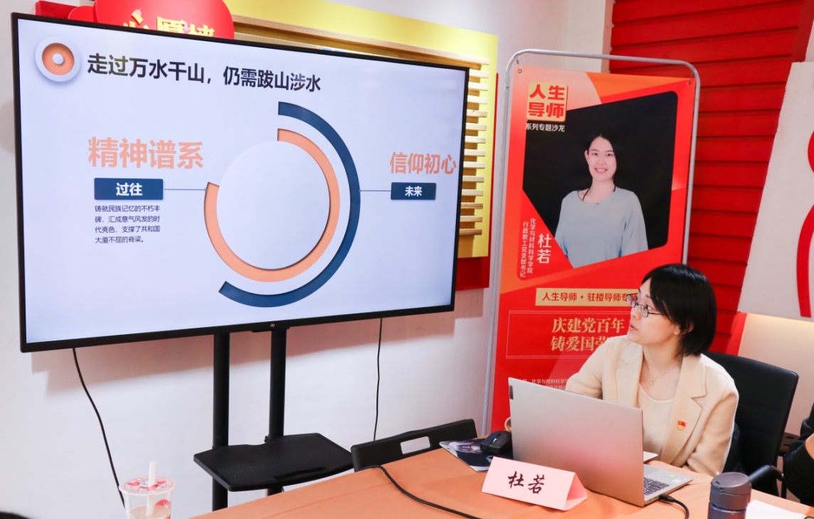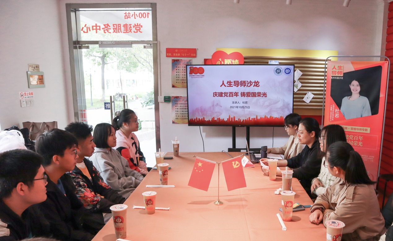 建党百年辉煌路,起航时代新征程。为厚植爱党爱国情怀,传承红色基因,10月人生导师沙龙上,九秀直播 特邀学院行政教工党支部书记杜若老师,以“庆建党百年,铸爱国荣光”为主题,与同学们谈爱国、话初心。本次沙龙由学院思政专项辅导员李晓彤老师主持。