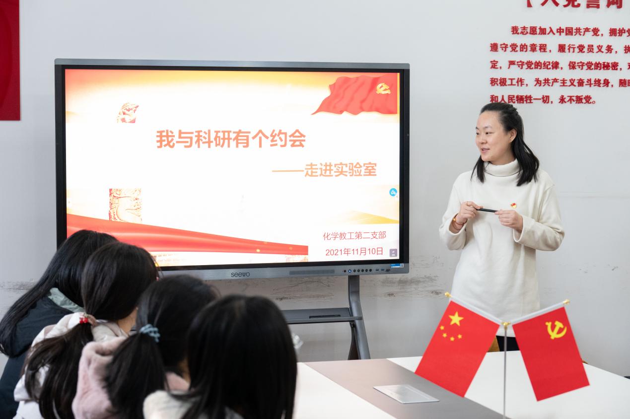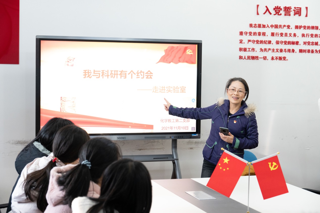 2021年11月10日下午,九秀直播 化学教工第二党支部“我与科研有个约会——走进实验室”活动在徐汇校区分析化学硕士点实验室顺利举行。化学教工第二党支部10余位专业教师和分析化学硕士研究生,为参与活动的40余名同学们进行了生动的现场讲解和演示。