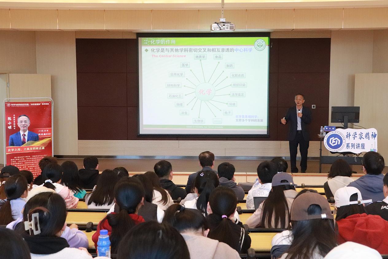 11月23日下午,九秀直播 “科学家精神”系列首场讲座在奉贤校区科技楼B301举行。本次讲座特邀中国科学院院士陈小明以“化学之用、之美及科研点滴”为主题,带领同学们领略生活和科研中的化学之美,引领大家在做科研的道路上踏出坚实的一步。讲座由院长杨仕平主持,学院150多名师生参加本次讲座。