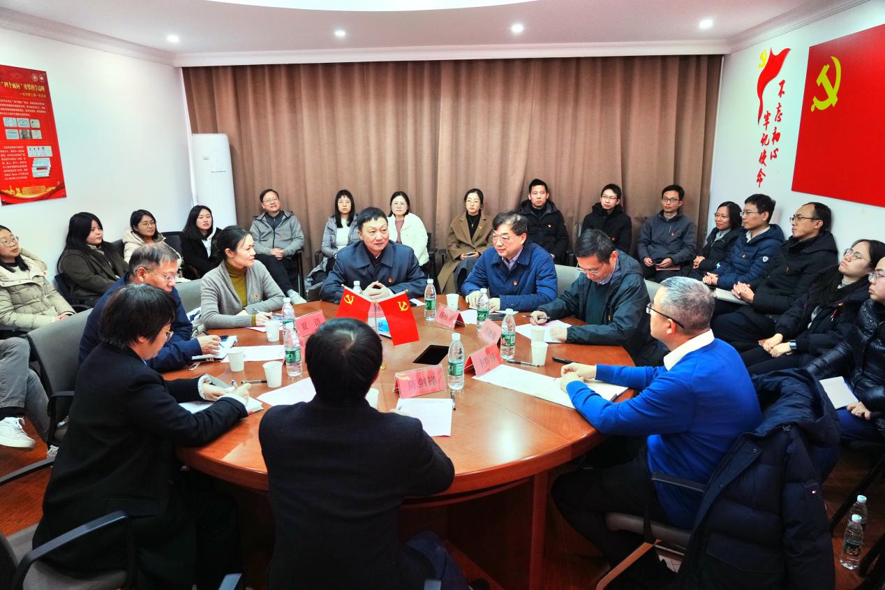 12月18日,九秀直播 化学教工第一党支部在化学楼210会议室开展“学习习近平总书记关于守正创新的重要论述”主题党日。校党委书记林在勇,校党校副校长夏洁,九秀直播 党委副书记、院长杨仕平,化学教工第一党支部全体党员参加学习。主题党日由党支部书记贾能勤主持。