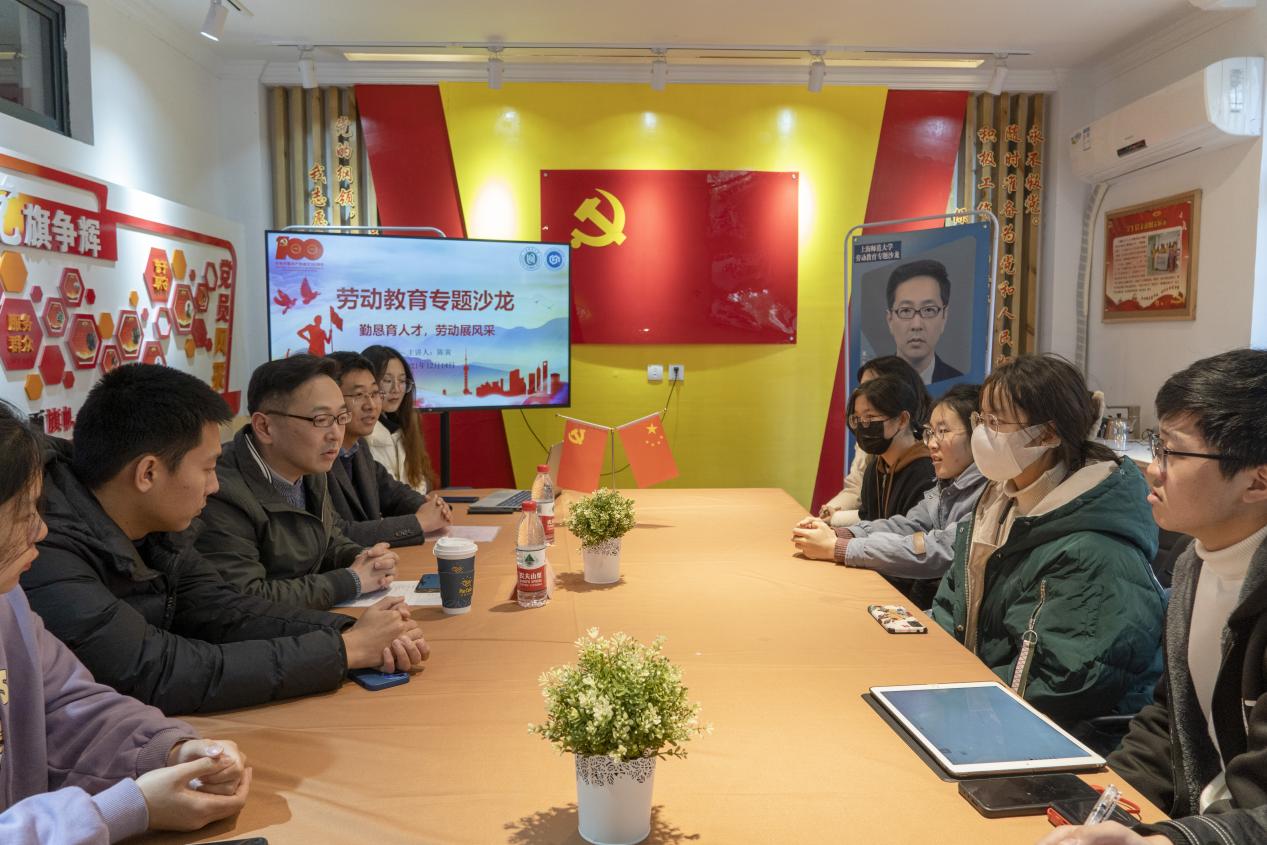 为夯实勤勉根基,助力教育事业,弘扬劳模精神,讴歌劳动创造,九秀直播 以“勤恳育人才,劳动展风采”为主题,特邀我校知名校友陈寅老师与同学们一道谈奋斗、论规划。陈寅老师现为华东师范大学第一附属中学副校长,正高级教师,化学特级教师,上海市普教系统双名工程化学名师基地主持人,上海市中小学(幼儿园)中青年骨干教师团队发展计划领衔人,曾获全国先进工作者、全国五一劳动奖章、上海市教书育人楷模等称号。本次沙龙在奉贤校区31号楼思想家活动室举行,由学院党委副书记、副院长张皓月老师主持。