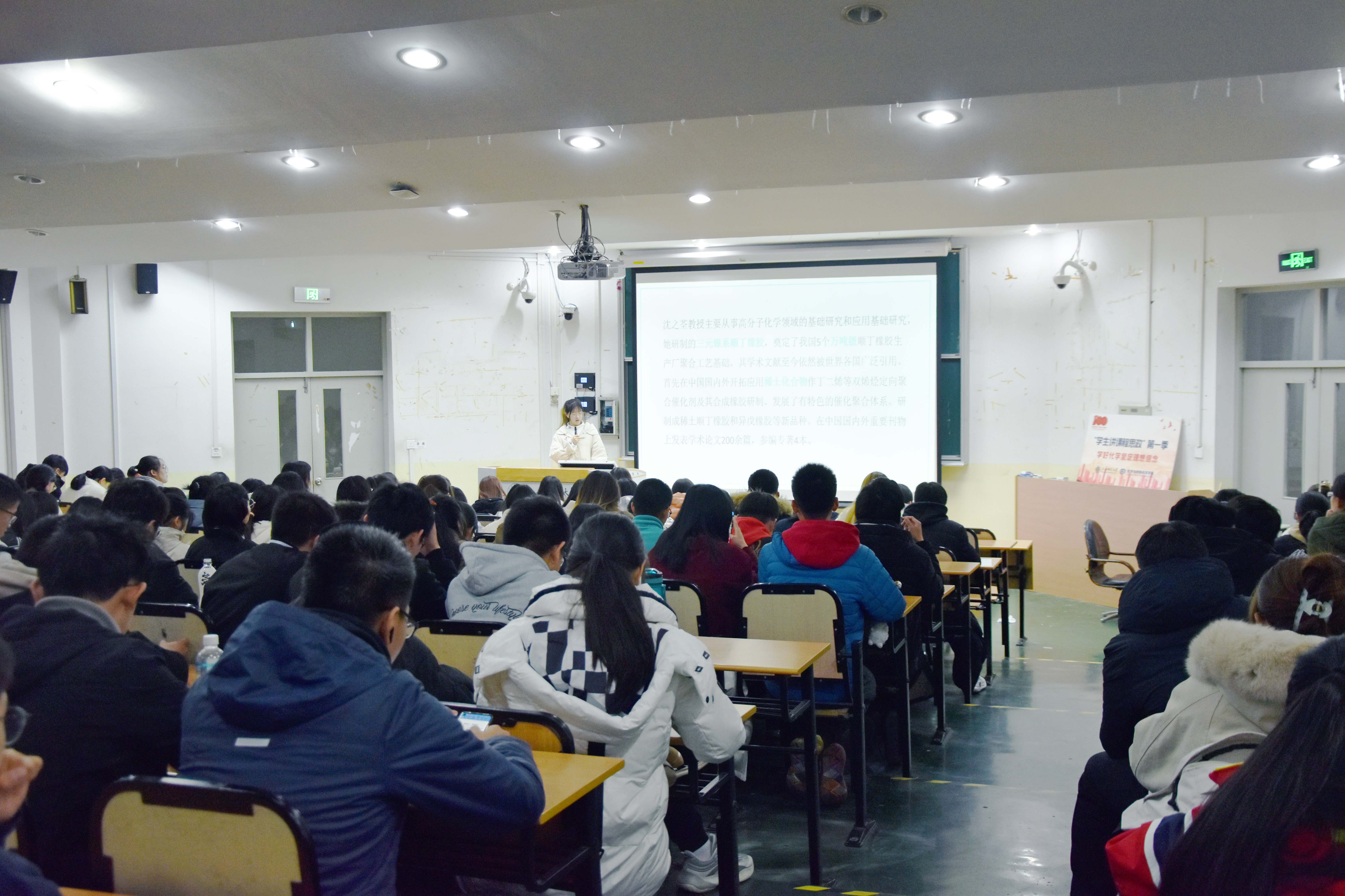 张娓娓由《高分子学报》上刊登的《荃意江南 芬芳高分子》一文,引入沈之荃教授及其提出的“三元镍系催化体系对丁二烯的定向聚合和镍顺丁橡胶的结构性能”的研究课题。张娓娓为同学们介绍了三元镍系顺丁橡胶的合成机理和合成的工艺过程,讲述了沈之荃教授在寻找镍系催化体系制备顺丁橡胶过程中遇到的困难及解决方法,以及三元镍系顺丁橡胶的工艺合成过程和应用,引导同学们学习沈之荃教授全情科研的科学精神,感受科学前辈从事科研工作时不畏艰难、严谨细致的优良作风。