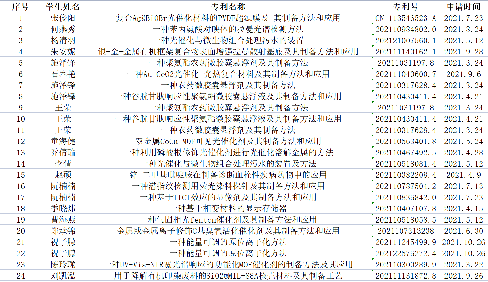 2021年学生科研专利
