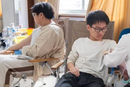 献血场氛围温暖而有序,同学们在志愿者的贴心引导下,依次完成登记表填写、血压测量、验血初筛等环节。符合条件的同学们安静地坐在等候区,等待着献出他们的热血。