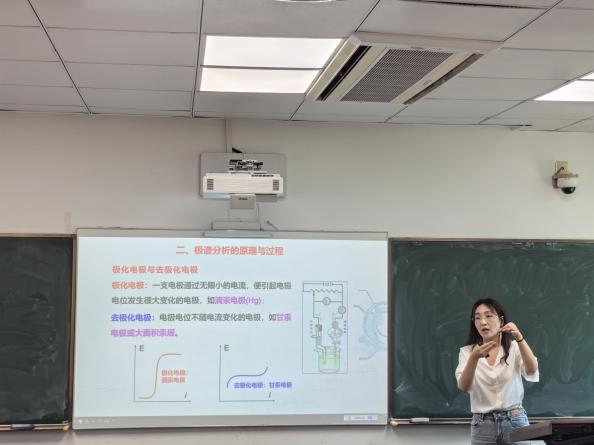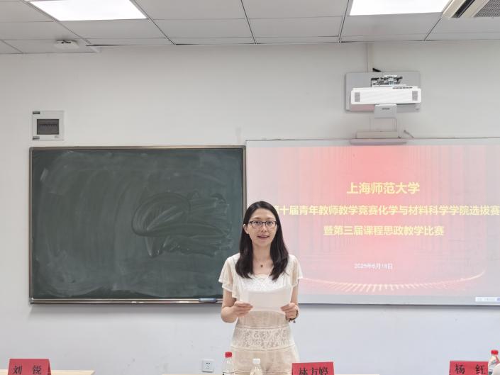 本次大赛严格对标校级青教赛标准,设置“教学设计”“课堂教学”与“教学反思”三个核心环节,全面考察教师的教学综合素养与思政育人能力。参赛教师们在赛前精心打磨教学大纲、教学设计和教学课件。在现场教学环节,参赛选手依据随机抽取的课题,在限定时间内进行了精彩的教学展示。六位青年教师凭借深厚的专业功底、清晰的教学思路和饱满的教学热情,将抽象的化学原理、复杂的化学概念与前沿科技相结合,通过生动案例、富有启发性的互动设计,转化为学生易于理解和掌握的知识。