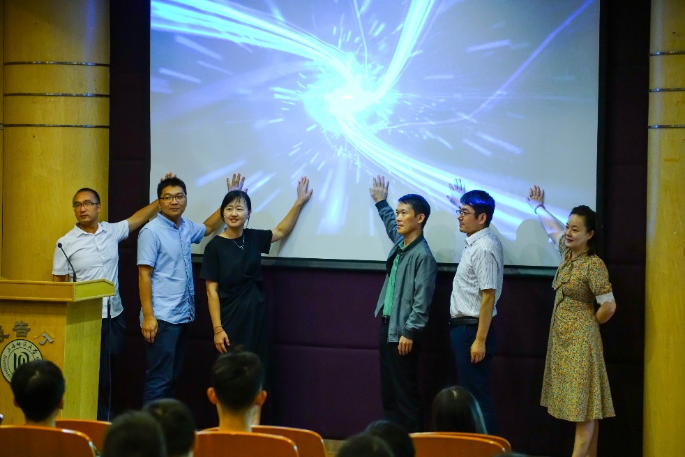 典礼最后,卢丹凤老师带领大家回顾了首届科学家精神活动月内容,与会老师上台,共同启动了“弘扬科学家精神,赋能科技强国建设”第二届科学家精神活动月主题活动,激励化材学子锐意创新、勇攀科技高峰。