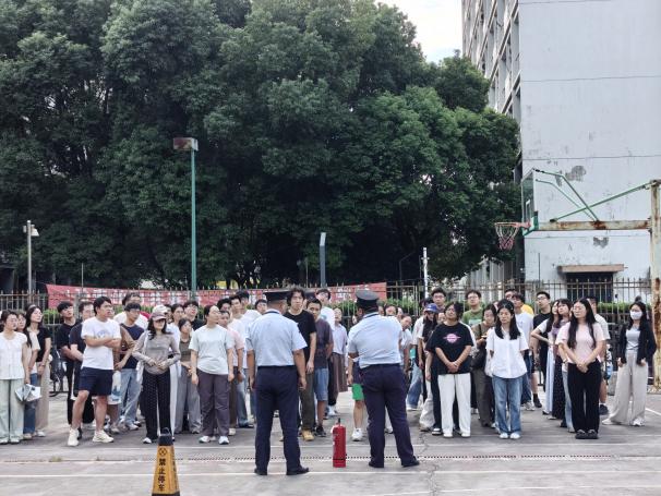 本学期,学院还联合保卫处和研究生院分别在徐汇、奉贤两个校区对全体研究生开展了消防安全演练与灭火器实操教学。通过“提、拔、握、压”的现场分步讲解与一对一指导,确保每一位研究生都能熟练掌握灭火器的正确使用方法,将理论知识转化为实战能力。此次全覆盖式演练有效提升了研究生们在紧急情况下的应急处置和自救互救能力,进一步巩固了培训成效,为构建平安校园提供了坚实保障。
