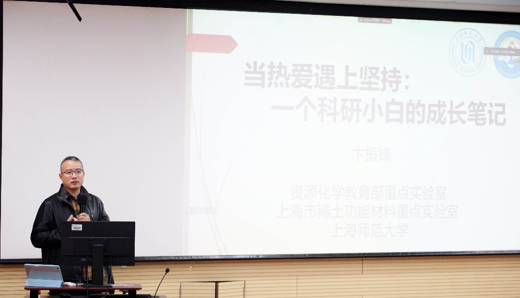 卞振锋教授以一段亲身经历切入,和同学们的科研初心产生了共鸣,紧接着他补充道,仅怀热忱是不够的,还需依托平台的支撑。随后,他详细介绍了上海师大九秀直播 的优质资源:这里的国家级实验室、省部级科研平台,是科研新手也能上手的“入门工具”;导师团队会带着大家从“好奇试管里的颜色变化”,逐步成长为“能独立设计实验方案”的研究者;也是学生的热爱、平台的支撑和365天的坚持造就了他上海市优秀毕业论文第一名的荣誉。