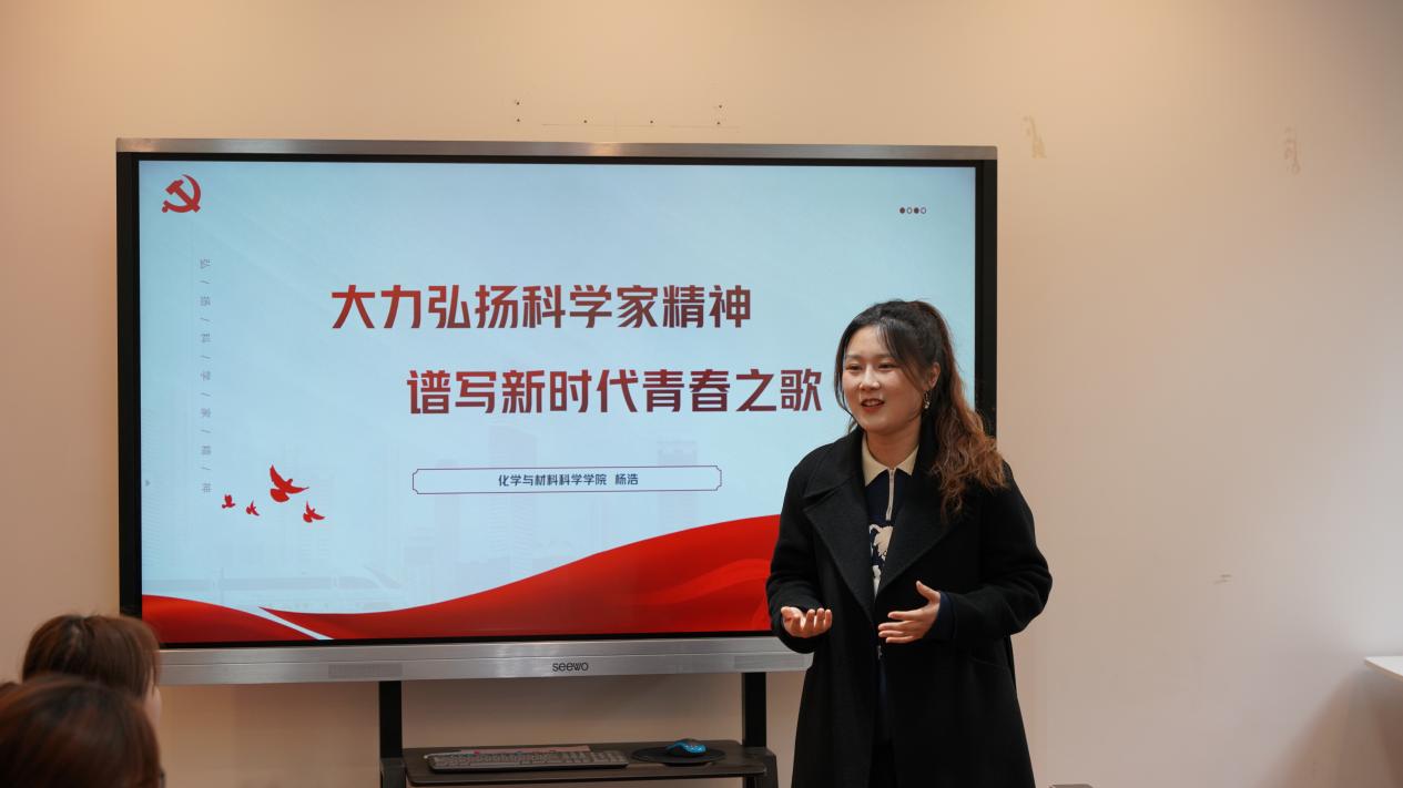 首先,杨浩老师带领同学们共同学习了科学家精神的丰富内涵。杨浩老师首先从党的二十大报告指出加快实施创新驱动发展战略展开,带领同学们回顾了党的十八大以来我国取得的科技成就,指出科技成就背后的精神支撑就是科学家精神。随后,杨浩老师结合科学家故事,阐述了科学家精神的丰富内涵。最后,杨浩老师以科学家精神勉励同学们潜心学习、深钻科研、报效祖国,为国家实现高水平科技自立自强,建设科技强国贡献青春力量。